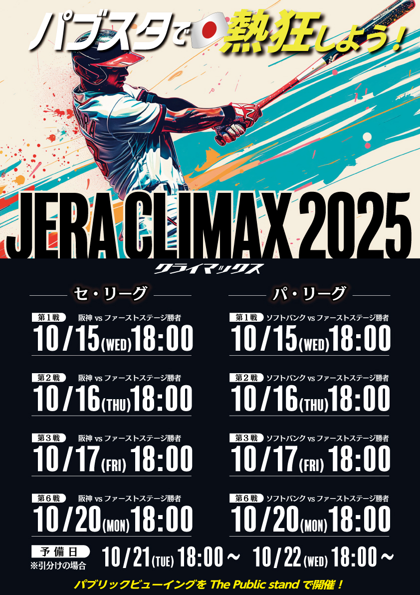 プロ野球2025 【クライマックスシリーズ 】を観戦しよう!パブリックスタンド/パブスタプラス/居酒屋パブリック/パブリックダーツクラブ/4業態で予約スタート!