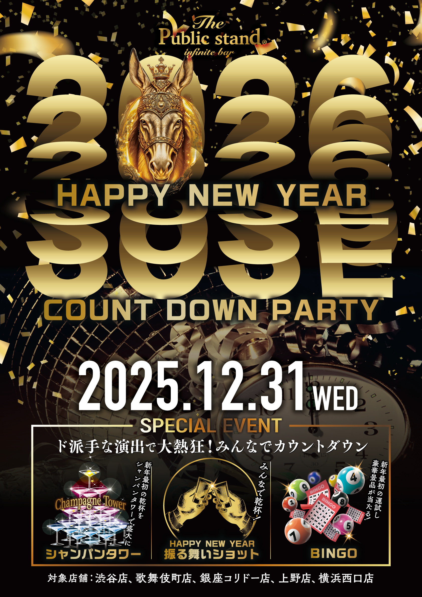 ド派手な演出で大熱狂! BARパブリックスタンドで恒例の!新年2026カウントダウンパーティーを開催します!